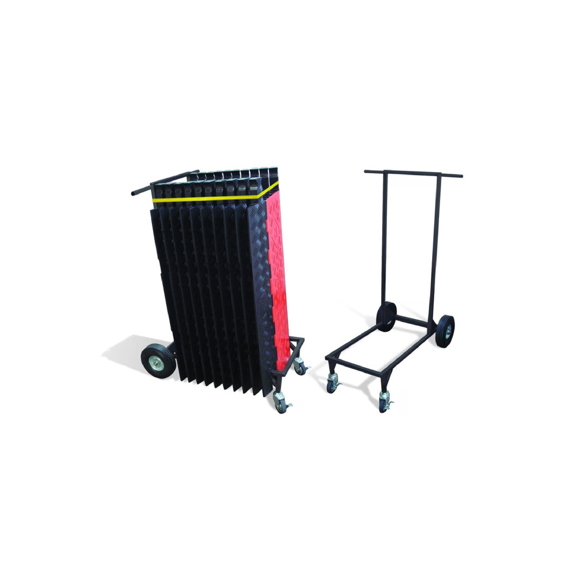 CHECKER® CABLE PROTECTOR TRANSPORT CARTS are four wheel carts that allow one person to easily transport or store multiple GUARD DOG® Cable Protectors, LINEBACKER® Cable Protectors, or YELLOW JACKET® Cable Protectors at one time. Carts speed up installations and provide safe, organized storage These sturdy carts are constructed of rugged, tubular steel with a durable black powder-coat paint finish and are very easy to maneuver.
