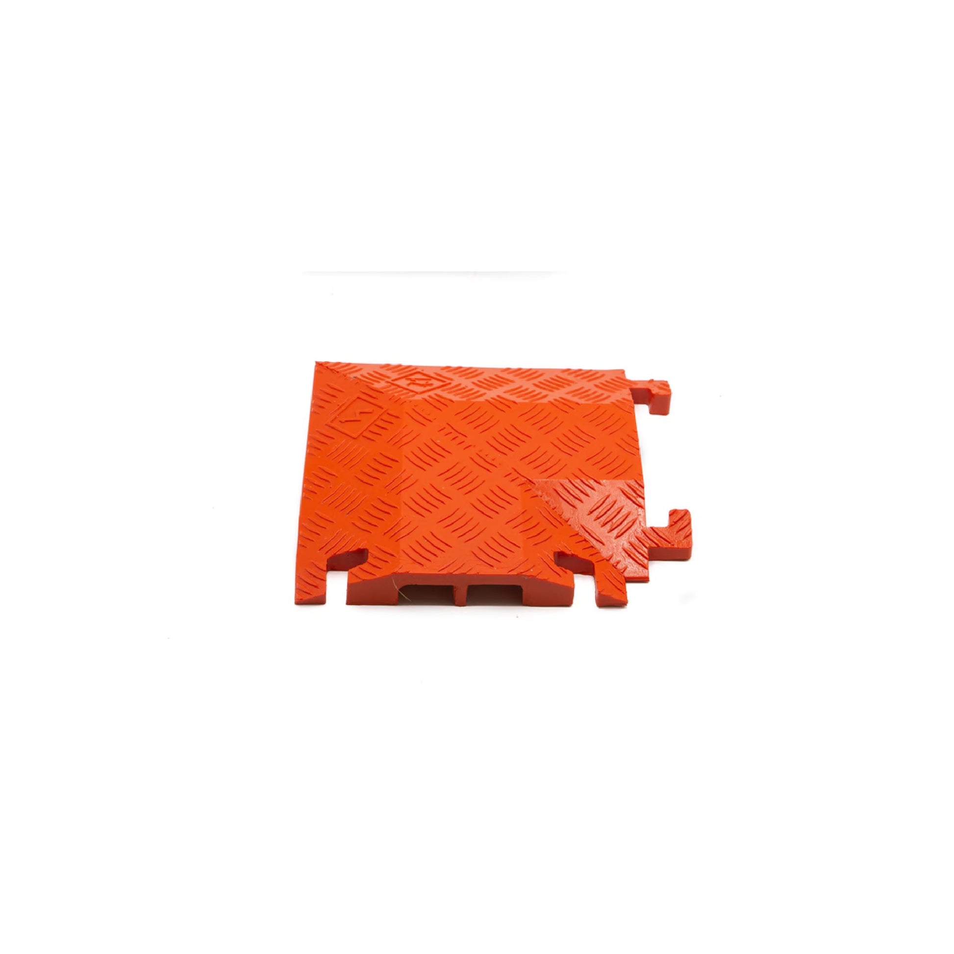 Use 2-Channel Fastlane® Drop-Over Cable Protector 90 Degree Right Turns with FL2X1.75 Series. Fastlane® lightweight drop-over protectors are made from durable polyurethane and feature heavy-duty, patented L-Connectors for easily attaching additional protectors to extend to any desired length. Patented 5-bar tread plate surface provides maximum traction for carts and pedestrian traffic. These low profile protectors fit multiple cable sizes and are compact for easy setup, disassembly, and storage of cables up to 1" tall and 1.75" wide.