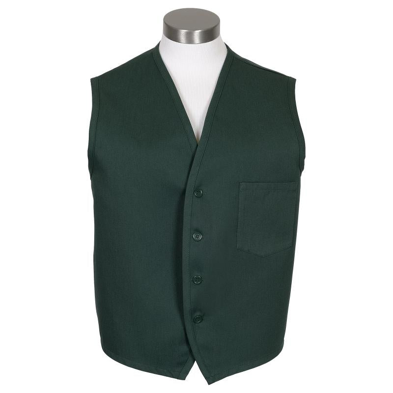 Most Popular Unisex Vest – V40 - This is the perfect waiter vest. This unisex vest comes with bound edges, chest pocket with pencil divide. Four color-matched buttons. Made from 7.5 oz. ultra-durable 65/35 poly/cotton twill. Protected by Protected by ProDura® stain release finish.