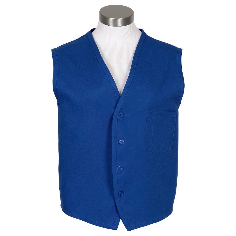 Fame's most popular vest. Features include bound edges, left chest pocket with pencil stall, and four color-matched buttons. Made from ultra-durable 65/35 poly-cotton twill that is protected by ProDura® stain release finish. Suited for home wash.