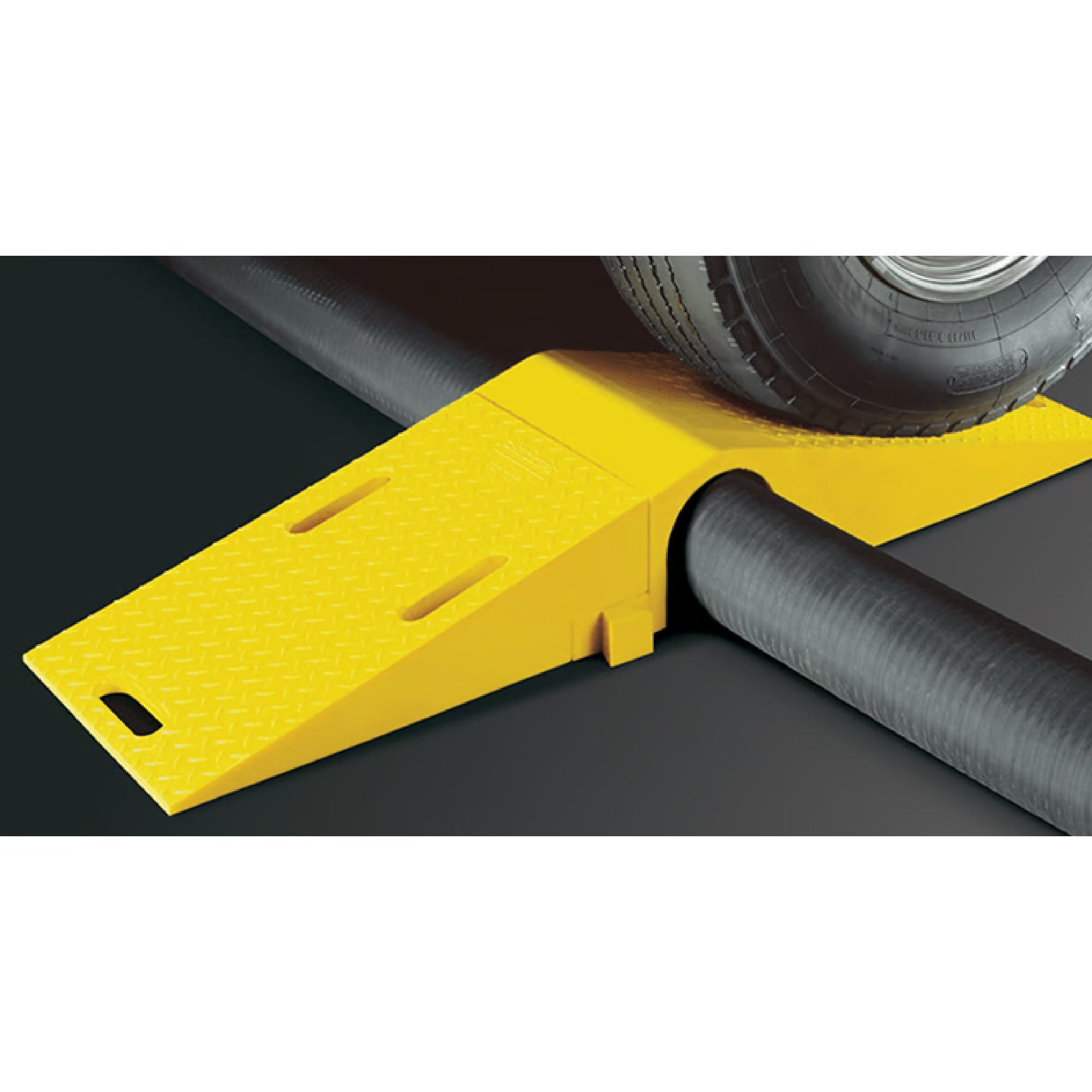 Diamondback® single tunnel systems provide protection for valuable cable and hose lines while ensuring a safe method of passage for vehicles. High-density, all-weather urethane construction protects from damage by physical pressure and reduces cable and hose maintenance and replacement costs. The single tunnel systems feature a high load-bearing capacity, modular, interlocking design, and diamond-plate tread surface for increased traction with hoses and cables up to 3.5" in diameter.