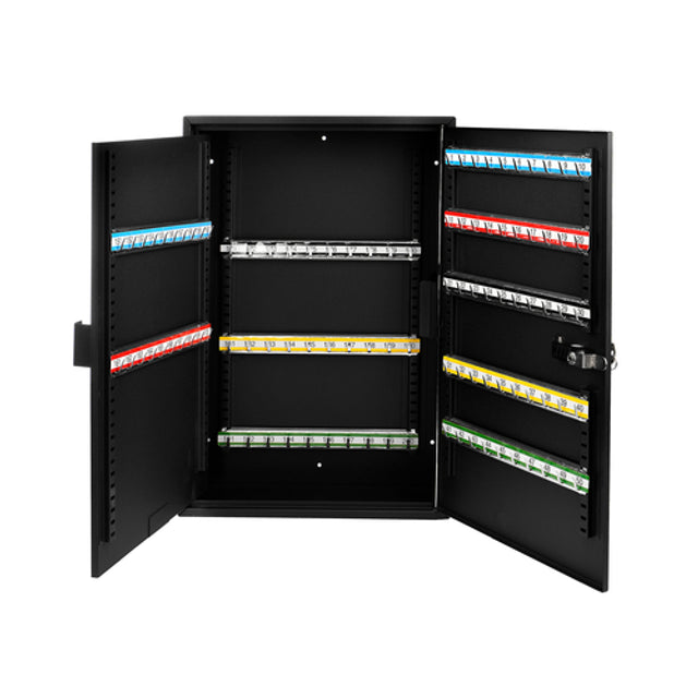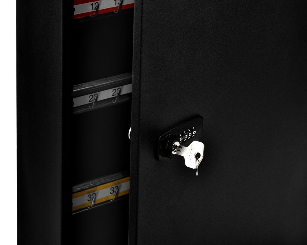 AdirOffice Secured 200-Key Cabinet with Combination and Key Lock is expertly constructed using 16-Gauge, heavy-duty steel for optimal security and durability. It also features a continuous piano hinge to keep the door in line with the cabinet, offering optimal security and durability to supply years of reliable use. Providing easy access and safe storage for up to 200-keys, the cabinet features a depth that accommodates larger key rings, so you no longer have to remove keys from their rings in order for them to fit inside. It also comes complete with complimentary color-coded key tags to make organization quick and efficient. Keys can be hung separately on hooks or with multiple keys on supplied key tags. For added security, the 3-digit combination spinlock provides an entry code that can be changed as often as you like. With over 1,000 possible combinations available, users will never have to worry about theft or re-keying their locks again.