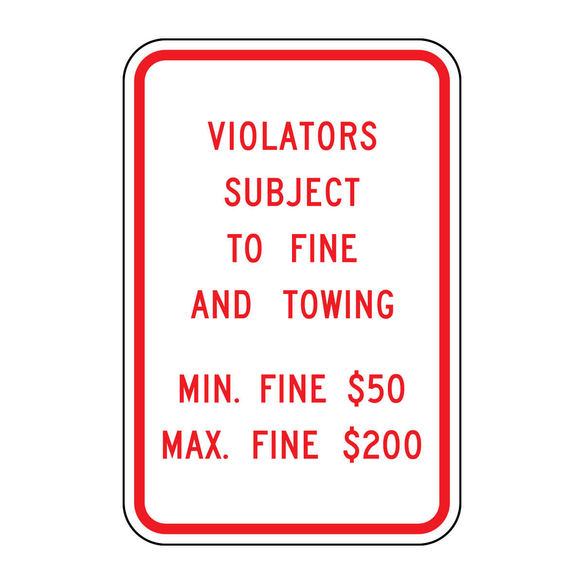 Violator Subject To Fine and Towing Min. Fine $50 Max. Fine $200 (Pennsylvania)