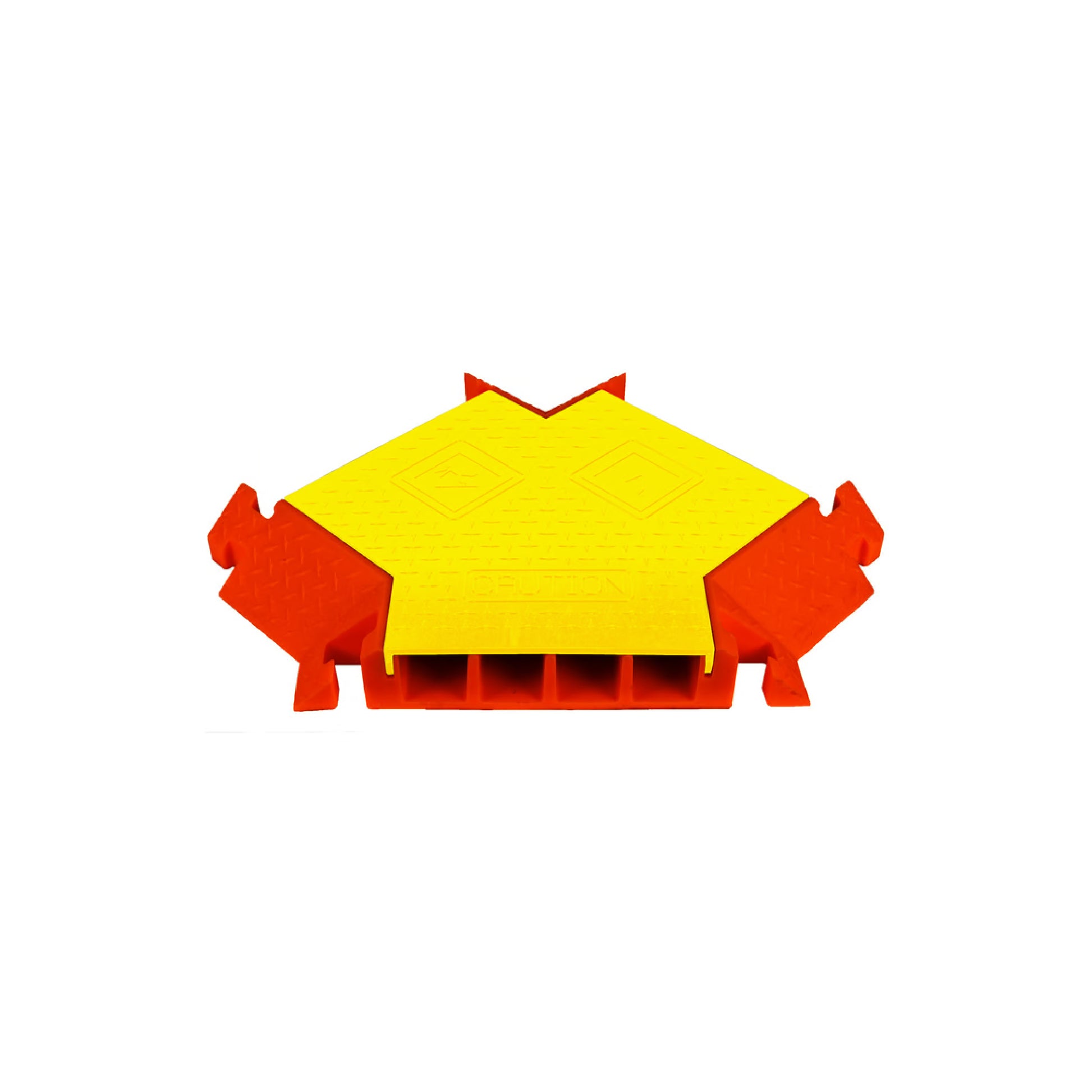 Use the 4-Channel General Manufacturing Linebacker® "Y" with Linebacker® 4-CHANNEL GENERAL MANUFACTURING CABLE PROTECTOR with hinged lid. Protects valuable electrical cables and hose lines from damage while providing a safe crossing in high volume traffic areas for cables up to 3" tall and 3" wide. Modular interlocking design is ideal for use in industrial manufacturing facilities and heavy equipment areas.